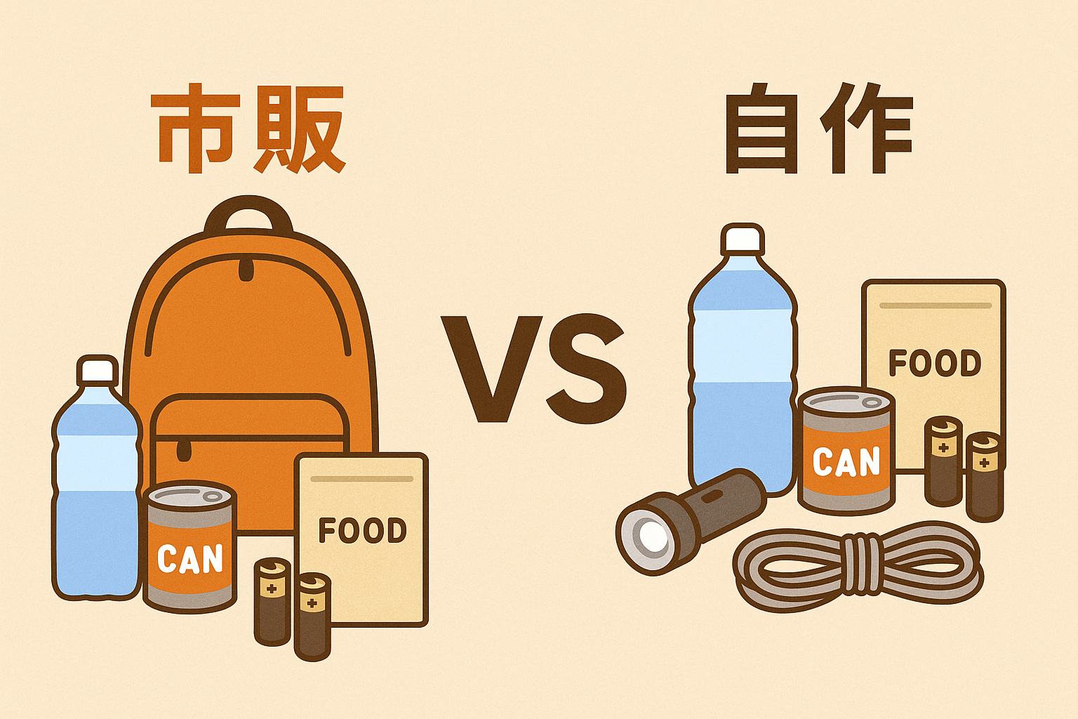 防災対策を始めたいけれど「市販セットを買うべきか、自分で一式そろえるべきか」が分からない——そんな人に向けて、両者の違いを実体験と調査をもとに整理しました。